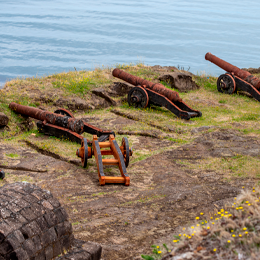 Visita à costa de Valdivia e suas fortalezas coloniais em Niebla.
