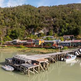 Visita à pitoresca Caleta Tortel, vila sobre passarelas de madeira no sul do Chile.